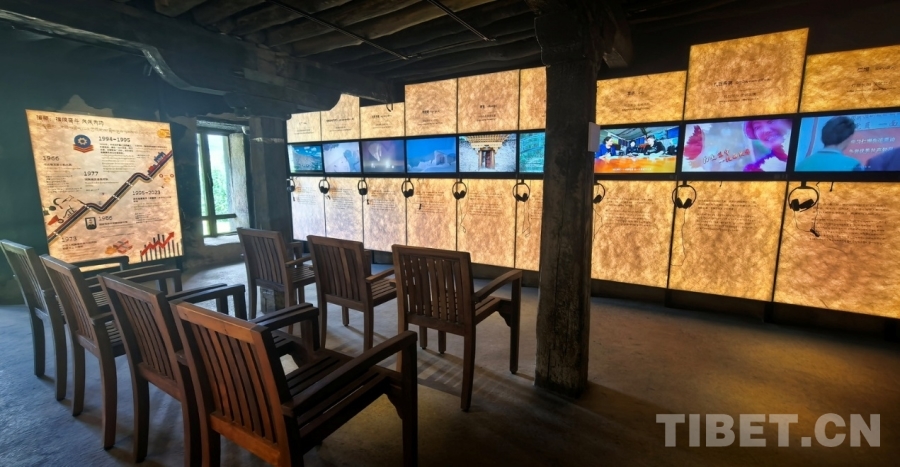 圖為強吉莊園公共文化活動中心二層通過影音設備講述新時代為建設社會主義現(xiàn)代化新西藏做出杰出貢獻的人們的故事 攝影:劉莉