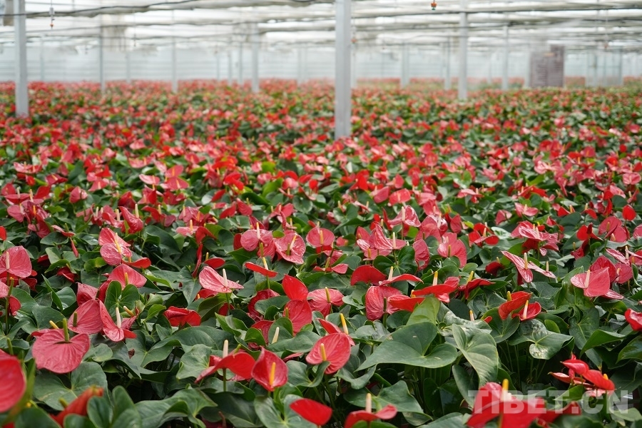 文成公主種下民族團(tuán)結(jié)的種子,在今天依舊開出鮮艷的花。才納園區(qū)總投資6億元,其中江蘇援藏資金1.5億元。紅掌花卉基地就是江蘇省泰州市產(chǎn)業(yè)援藏的一個(gè)典范,基地由泰州國(guó)有企業(yè)蘇中園藝公司和才納園區(qū)合作建設(shè),總面積16畝,溫室規(guī)模1萬(wàn)余平方米,年可生產(chǎn)鮮花10萬(wàn)盆。