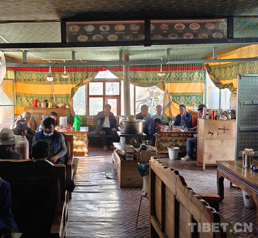 43歲的拉姆和家人共同經(jīng)營著一家藏式茶館,主要供應甜茶、肉餅、藏面、炸土豆、砂鍋餃子等深受當?shù)厝罕娤矏鄣拿朗?。拉姆還在茶館對面開設了一間便民小賣部,貨架上整齊擺放著各類生活必需品,成為村民們?nèi)粘2少I的溫馨驛站。