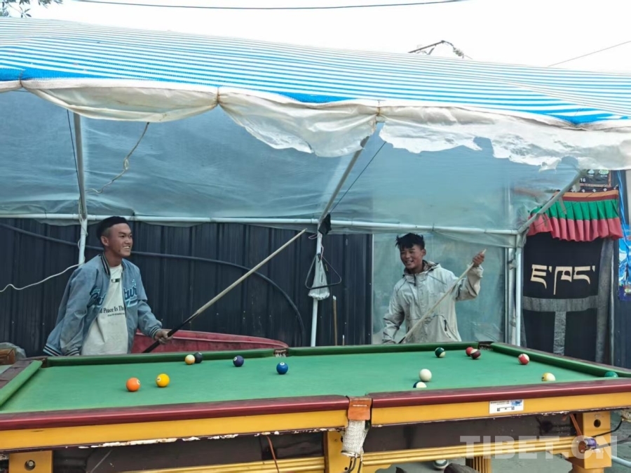 圖為森嘎村的年輕人在享受臺球的樂趣