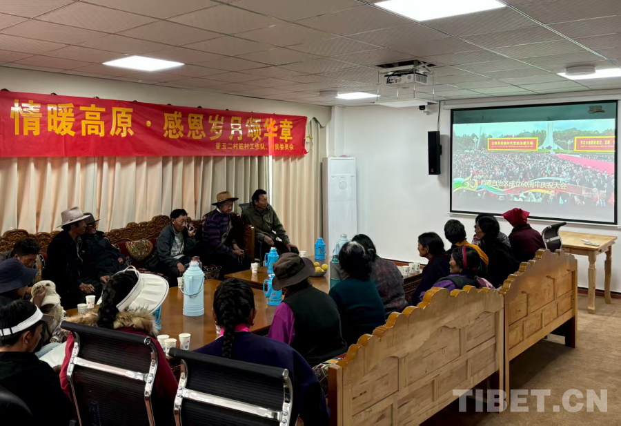 圖為普玉二村村民觀看西藏自治區(qū)成立60周年慶祝大會盛況