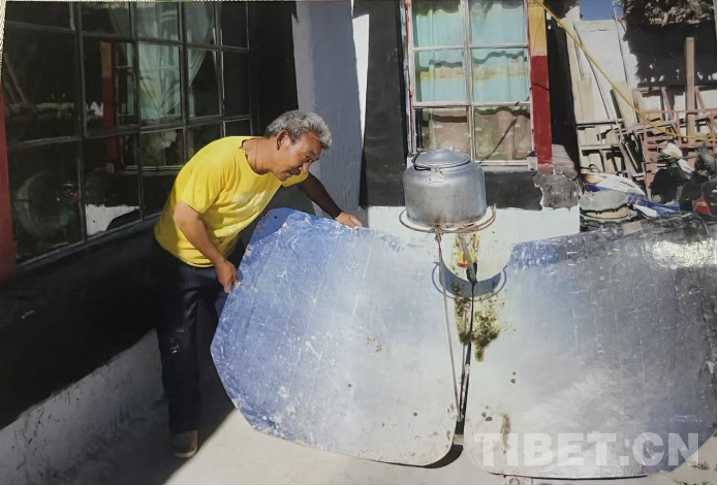 這個(gè)是太陽(yáng)灶,大概是2000年左右,基本上每家每戶都有一臺(tái)。我們屬于半農(nóng)半牧,生火用木材,消耗很大。有了這個(gè)太陽(yáng)灶后,不用木料,而且也很方便。但由于存在火災(zāi)隱患,后來(lái)就沒(méi)用。我們現(xiàn)在住的這套房子是2018年新建的,照片中的是2018年前的房子。