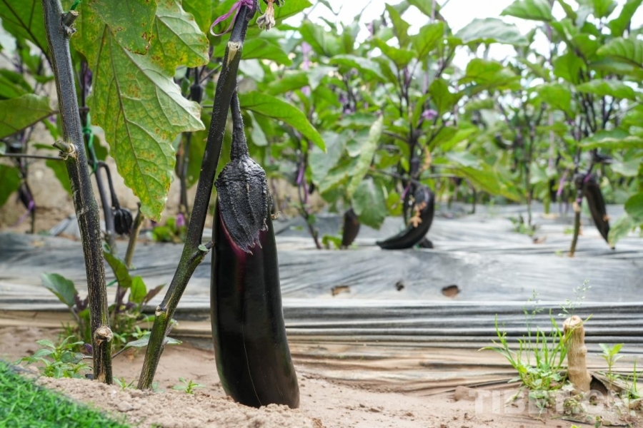 圖為噶爾縣生態(tài)農(nóng)業(yè)產(chǎn)業(yè)園區(qū)的溫室大棚內(nèi)種植的茄子 攝影:邊子捷