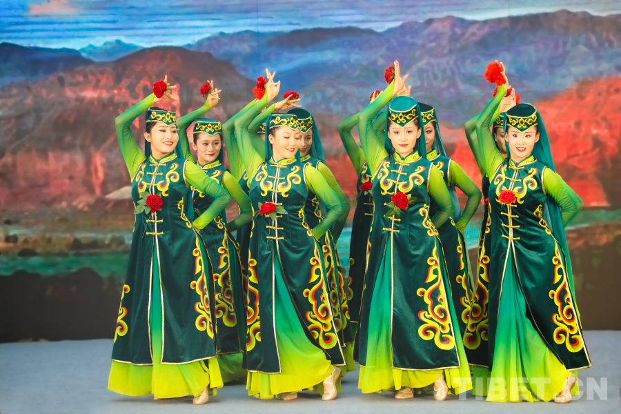 圖為活動(dòng)現(xiàn)場(chǎng)歌舞表演 攝影:龍真多吉