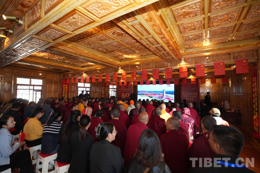 中國西藏網(wǎng)訊 9月3日上午,紀(jì)念中國人民抗日戰(zhàn)爭暨世界反法西斯戰(zhàn)爭勝利80周年大會在北京天安門廣場隆重舉行,以盛大閱兵儀式,同世界人民一道紀(jì)念這個偉大的日子,共同開創(chuàng)更加光明的未來。同一時刻,在云南省迪慶藏族自治州香格里拉市松贊林寺,130余名我國宗教界人士觀看大會直播,共同見證這一歷史性時刻,感受新時代中國國防力量,激蕩愛國愛教情懷。