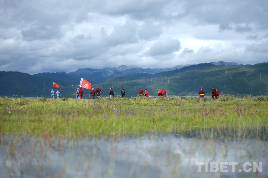 圖為“重走長征路”活動中,迪慶州我國宗教界人士沿著先輩足跡行進(jìn)噶丹·松贊林寺供圖
