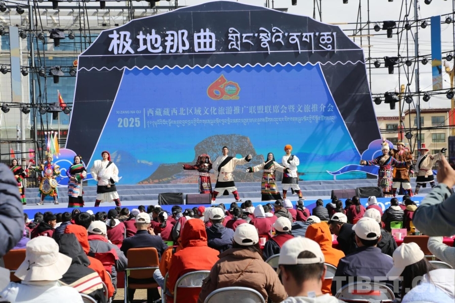 活動開始前,現(xiàn)場播放了昌都、那曲、阿里及相關縣(區(qū))的文化旅游宣傳片。昌都市與那曲市先后登臺推介本地文化旅游資源,昌都重點展示了茶馬古道、三江并流以及芒康鹽井等獨特資源;那曲則聚焦于羌塘草原、納木錯圣象天門、薩普景區(qū)以及格薩爾史詩等核心資源,彰顯了“極地那曲”的無限魅力。索縣、申扎、尼瑪三縣從微觀視角推介縣域特色——索縣的贊丹雪、穹雄溝、申扎縣的色林錯、尼瑪縣的當惹雍錯等人文風光,進一步豐富了藏西北文旅的內(nèi)涵。舞蹈《古韻》,《非遺服飾秀》、歌曲《年輕的城市》《請到那曲走一走》一次次將聯(lián)席會推向高潮。