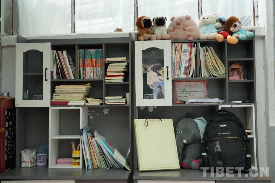 圖為羅啟明、尼吉女兒的書桌,右下角為中央代表團阿里分團贈送的書包 攝影:馮重霖