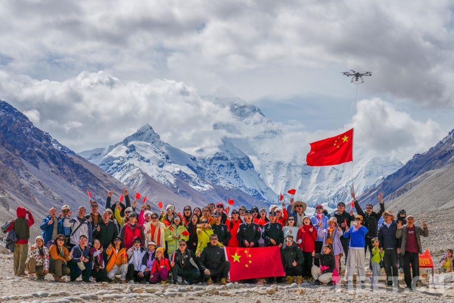 中國西藏網(wǎng)訊 國慶前夕,西藏日喀則邊境管理支隊珠峰邊境派出所民警在珠峰大本營和游客舉行了一場特殊的升旗儀式:一架無人機(jī)擎旗騰空,現(xiàn)場民警和群眾齊唱國歌,五星紅旗在雪域之巔迎風(fēng)飄揚(yáng)。(中國西藏網(wǎng) 通訊員/葉軼 記者/趙振宇)