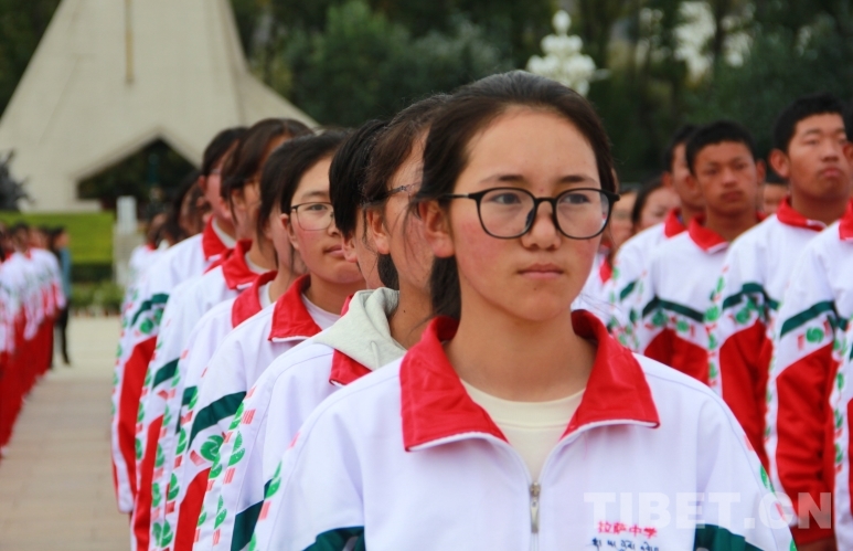 圖為師生代表在布達(dá)拉宮廣場(chǎng)上參加升國(guó)旗儀式 攝影:趙釗