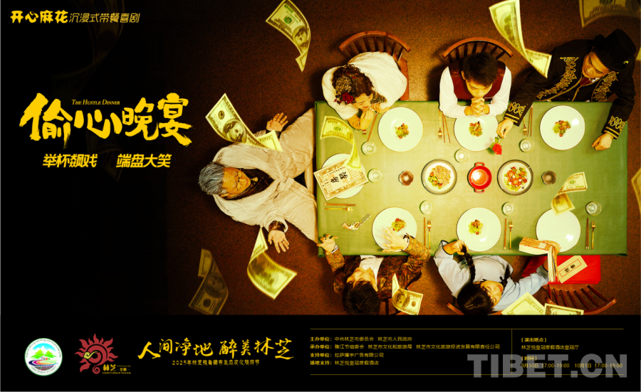 中國西藏網(wǎng)訊 當喜劇藝術邂逅高原風情,一場別開生面的文化盛宴在林芝精彩上演。9月30日晚,開心麻花沉浸式互動喜劇《偷心晚宴》在西藏林芝完成首演,為2025雅魯藏布生態(tài)文化旅游節(jié)增添了一抹亮色,也標志著林芝文旅融合邁出新步伐。