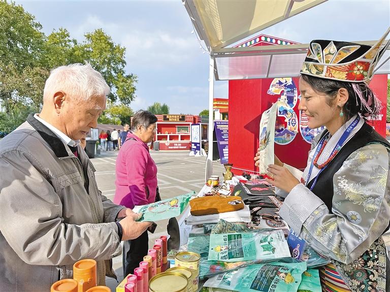 資料圖:第五屆“格?;ㄩ_(kāi)·南京墨竹周”上南京市民在寧墨市集選購(gòu)青稞 圖片來(lái)源:西藏日?qǐng)?bào)
