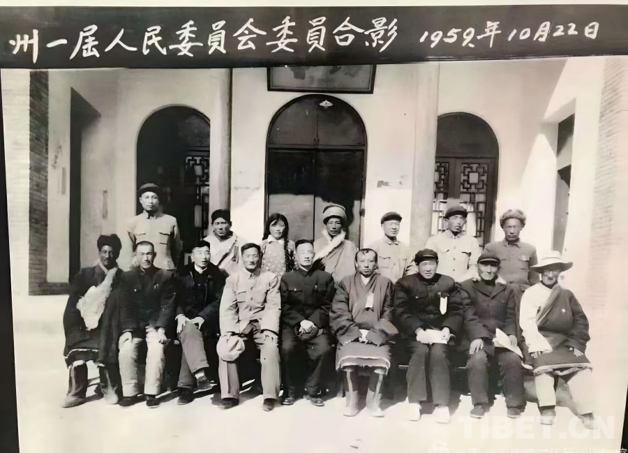 圖為1959年10月,米福堂(前排右二)當(dāng)選玉樹州第一屆人民委員會委員