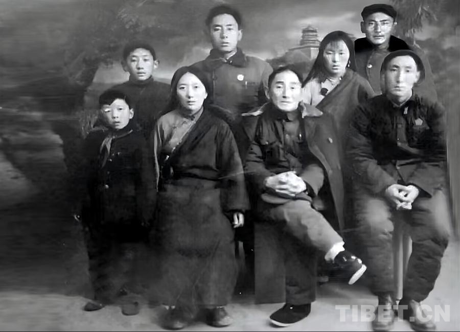 圖為米福堂全家福(1962年),前排左三為米福堂,左二為夫人布莎西拉措(布莎瓊?cè)R之妹,為布莎瓊?cè)R去世后續(xù)娶),左四為長子旺斗昂布,后排左一為五子土登嘉措,左二為次子米扎西,左三為長女德慶,左四為三子久甫。