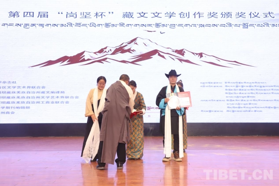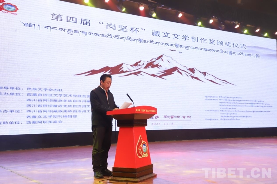 中國西藏網(wǎng)訊 11月8日,第四屆“崗堅杯”藏文文學(xué)創(chuàng)作獎頒獎儀式在拉薩舉行。來自北京、四川、青海、西藏等地的文學(xué)界代表、獲獎作者、藏文文學(xué)期刊主編及讀者代表齊聚一堂,共赴這場植根民族傳統(tǒng)、彰顯時代精神的文化之約,奏響新時代藏文文學(xué)守正創(chuàng)新的昂揚(yáng)旋律。