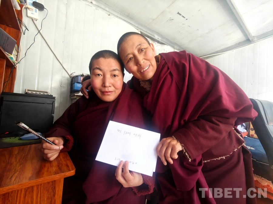 圖為民警更丁丁久為帕巴寺尼姑們開展國家通用語言文字學(xué)習(xí)培訓(xùn)