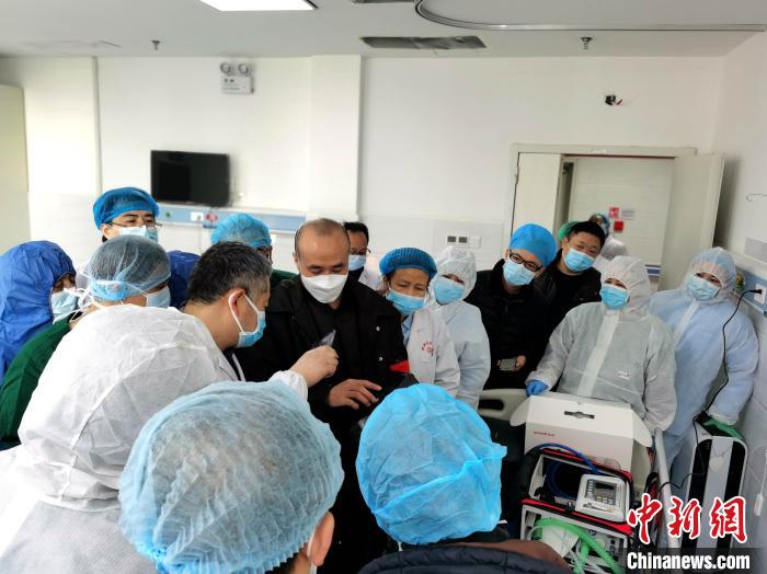 圖為青海醫(yī)療隊(duì)查看醫(yī)療物資。青海大學(xué)附屬醫(yī)院 攝