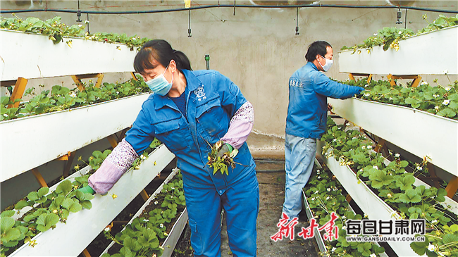 人勤春來早,春耕備耕忙。連日來隨著氣溫逐漸回升,甘肅省甘南藏族自治州舟曲縣白龍江兩岸的溫室大棚里,瓜果蔬菜長勢喜人,鮮花開得正艷。種植戶搶抓農(nóng)時(shí),抓好溫室蔬菜生產(chǎn)管理,全力保障疫情防控期間本地市場蔬菜供應(yīng),豐富市民的“菜籃子”。舟曲綠脈農(nóng)業(yè)科技有限公司的科技示范蔬菜大棚里,員工正在忙著給草莓除草,檢測室內(nèi)溫度,灑水,提前做好病蟲害防治工作,粉里透紅的草莓掛滿枝頭,再過一周左右草莓就成熟上市。