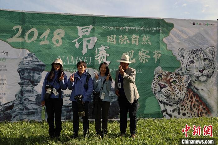圖為2018年昂賽國際自然觀察節(jié)上自然觀察愛好者與牧民合影。(資料圖片)中新社記者 羅云鵬 攝