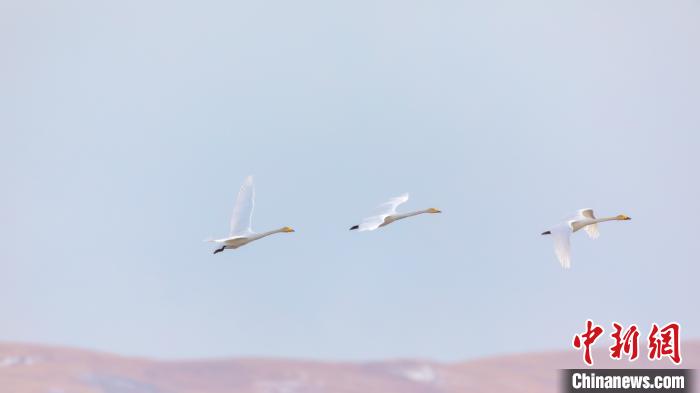 從西伯利亞飛來(lái)的大天鵝。若爾蓋縣融媒體中心供圖 攝