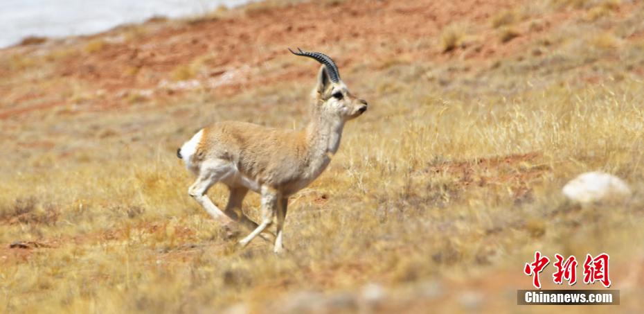 圖為奔跑的國家二級保護(hù)動(dòng)物藏原羚。 武雪峰 攝