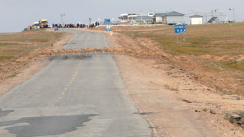藏羚羊通過青藏公路。