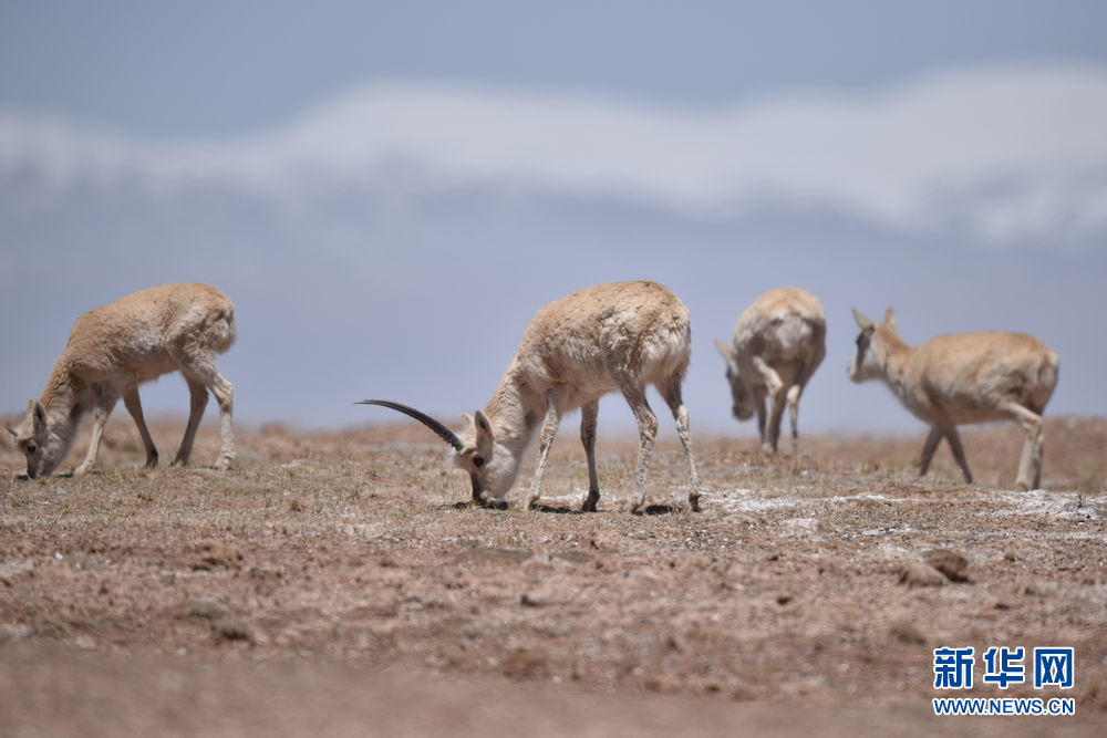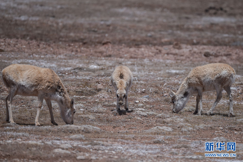 5月15日,幾只藏羚羊在可可西里地區(qū)活動。新華社記者 吳剛 攝