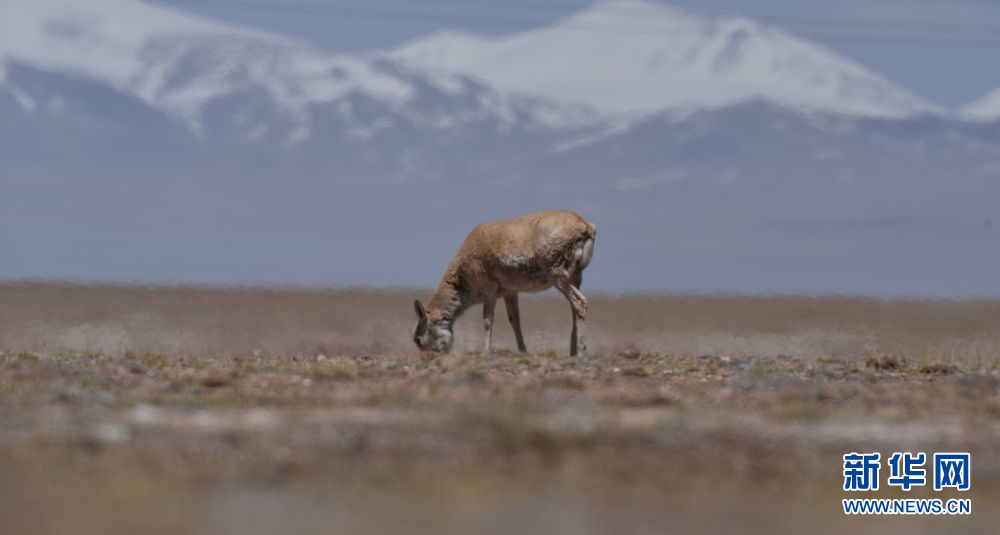 5月16日,一只藏羚羊在可可西里地區(qū)活動。新華社記者 吳剛 攝