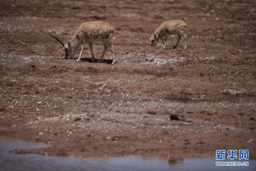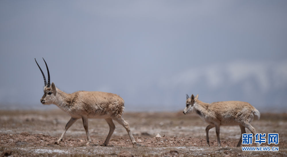 5月15日,兩只藏羚羊在可可西里地區(qū)活動。新華社記者 吳剛 攝