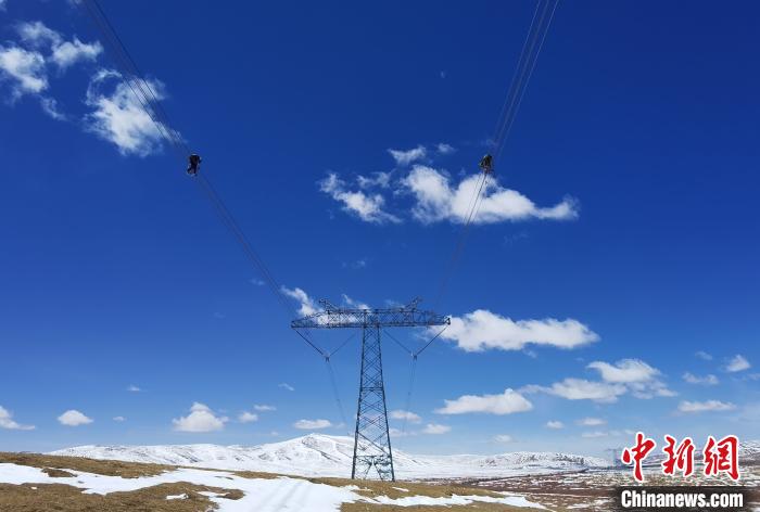 圖為架設(shè)在高原上的青?!幽稀?00千伏特高壓輸電線路。(資料圖) 邱福榮 攝