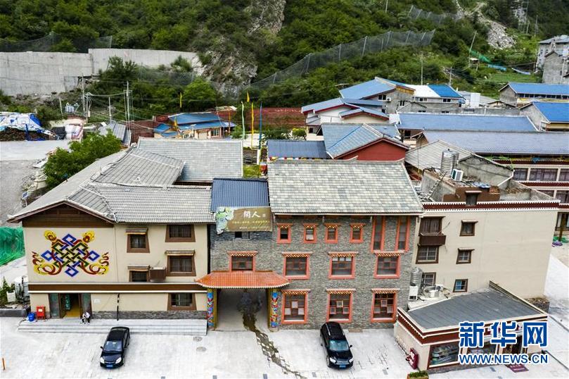 四川省阿壩藏族羌族自治州九寨溝縣漳扎鎮(zhèn)新建的用于旅游接待等功能的藏式風格民居(無人機照片,6月18日攝)。新華社記者 沈伯韓 攝