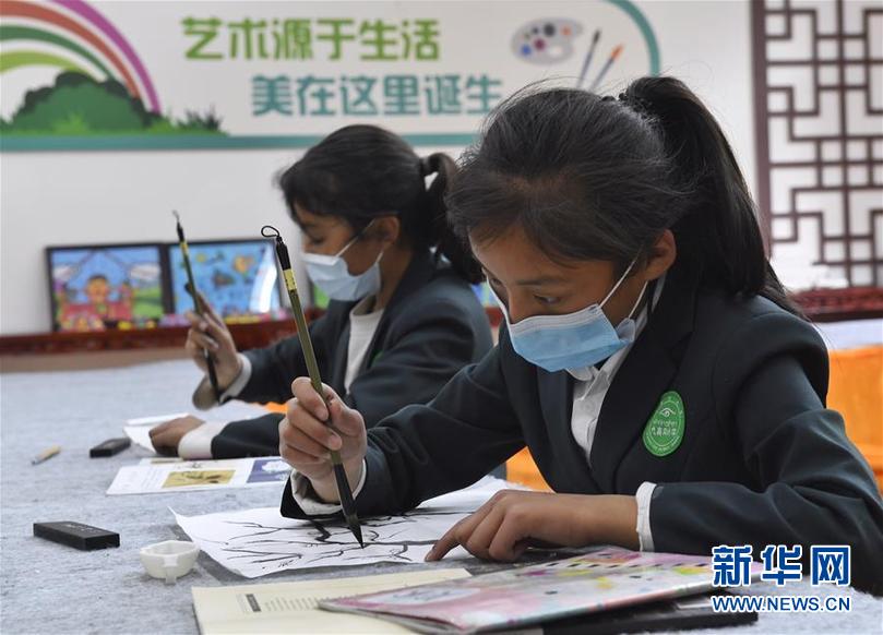 四川省阿壩藏族羌族自治州九寨溝縣九寨溝小學(原漳扎鎮(zhèn)小學)的學生在上國畫課(6月18日攝)。 新華社記者 劉坤 攝