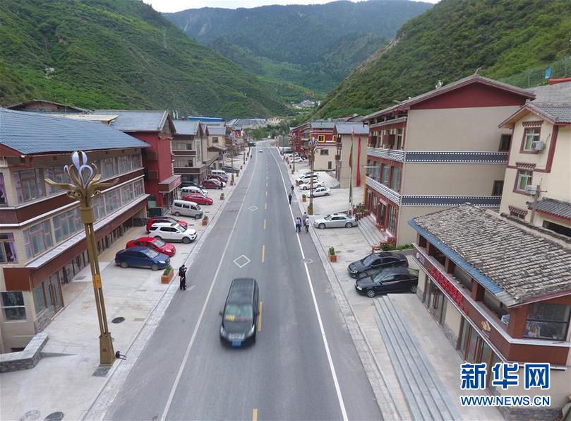 九寨溝地震震中九寨溝縣漳扎鎮(zhèn)新貌(無人機照片,6月18日攝)。新華社記者 劉坤 攝