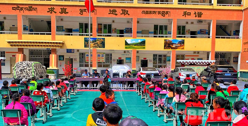 中國西藏網(wǎng)訊 暑期將至,為進(jìn)一步增強(qiáng)少年兒童的法治意識,營造有利于少年兒童健康成長的和諧氛圍。7月5日、6日四川省甘孜藏族自治州新龍縣公安局沙堆派出所及其所屬的銀多卡點(diǎn)民警先后走進(jìn)沙堆、銀多鄉(xiāng)小學(xué)校,開展“法治進(jìn)校園,安全記心中”教育普法活動。