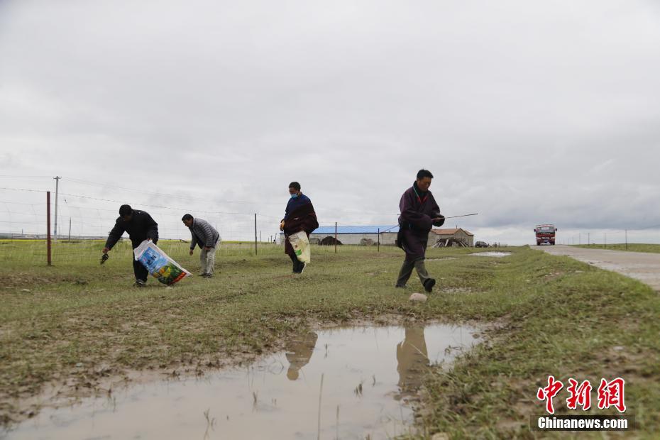 7月21日,青海省海北藏族自治州剛察縣伊克烏蘭鄉(xiāng)剛察貢麻村的萬瑪扎西、索南木旦巴、仁增才讓、吉科加四人在撿拾著草場垃圾。2008年,萬瑪扎西路在村支書的支持下,與索南木旦巴、仁增才讓、吉科加三個人組建了義務(wù)環(huán)保隊,自此一干就是12年。他們在撿拾垃圾的同時進行著環(huán)保宣傳,希望從源頭減少垃圾。仁增才讓說:“現(xiàn)在草原上的垃圾幾乎是看不到了?!敝行律缬浾?馬銘言 攝