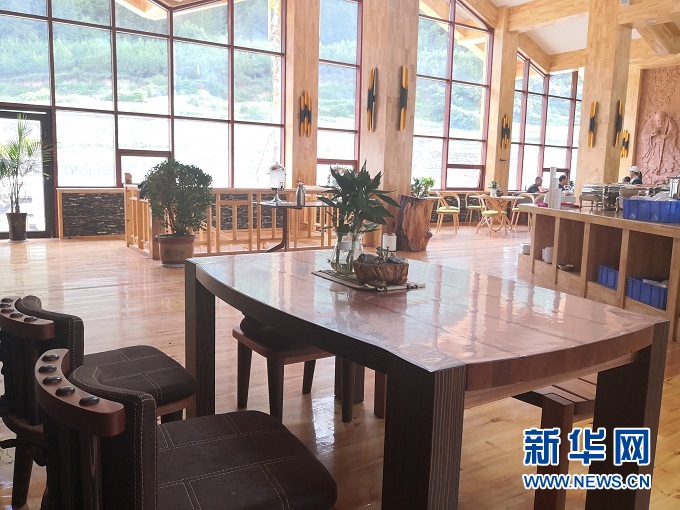 傍晚時(shí)分走進(jìn)高吉村,錯(cuò)落有致的民宿散落山間,落地窗透出暖黃色的燈光。房間里藏式床鋪與原生態(tài)家具相映成趣,靠窗的榻上擺放著茶幾、茶具、綠植,一覽無余的窗外夕陽半落、云飛鳥散。游客接待中心也一改傳統(tǒng)樣式,樓上是純木質(zhì)、開放式餐廳,樓下是小橋流水、曲徑通幽的水景,游客們?nèi)齼蓛傻暮戎Х龋硎苤娨獾娜松?/p>