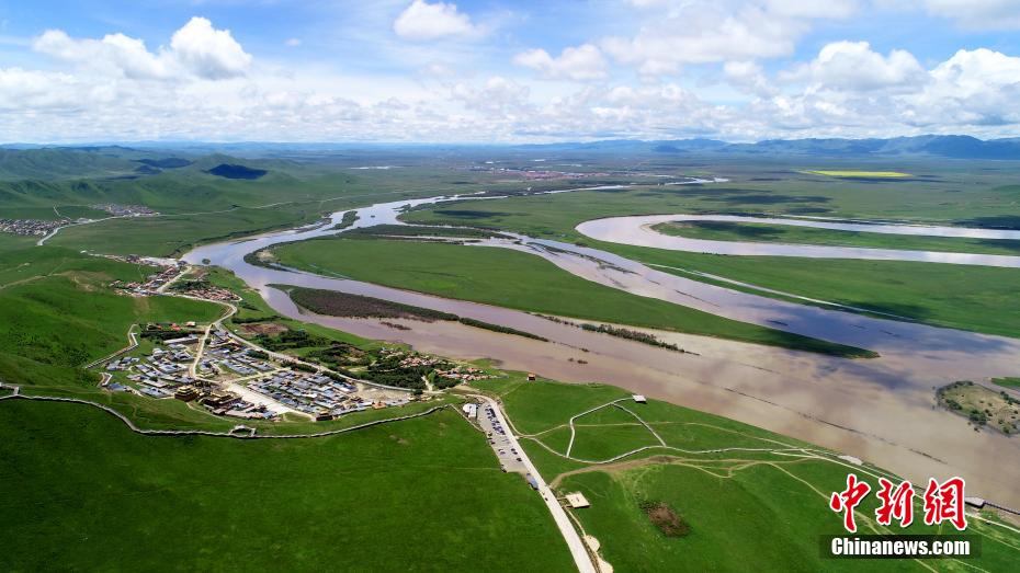 黃河九曲第一灣位于四川省阿壩藏族羌族自治州若爾蓋縣唐克鎮(zhèn),此處是四川、青海、甘肅三省交界處,黃河水在這里形成一個(gè)巨大的回灣,被稱(chēng)為黃河九曲第一灣。黃河和白河將這里的草原分割成無(wú)數(shù)河州、小島,水鳥(niǎo)翔集,澄河蜿蜒曲折,清澈的河流水勢(shì)平緩,藍(lán)天白云,綠草繁花,帳篷炊煙,牛羊駿馬,盤(pán)旋的雄鷹,如詩(shī)如畫(huà),氣象萬(wàn)千。