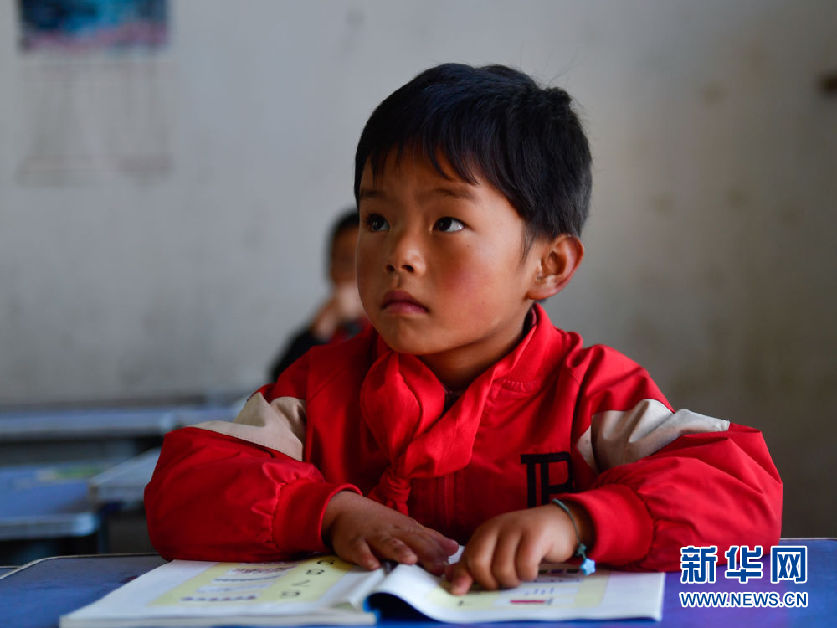 8月31日,在來塘村學校,一年級學生馬良在學習。新華社記者 張龍 攝