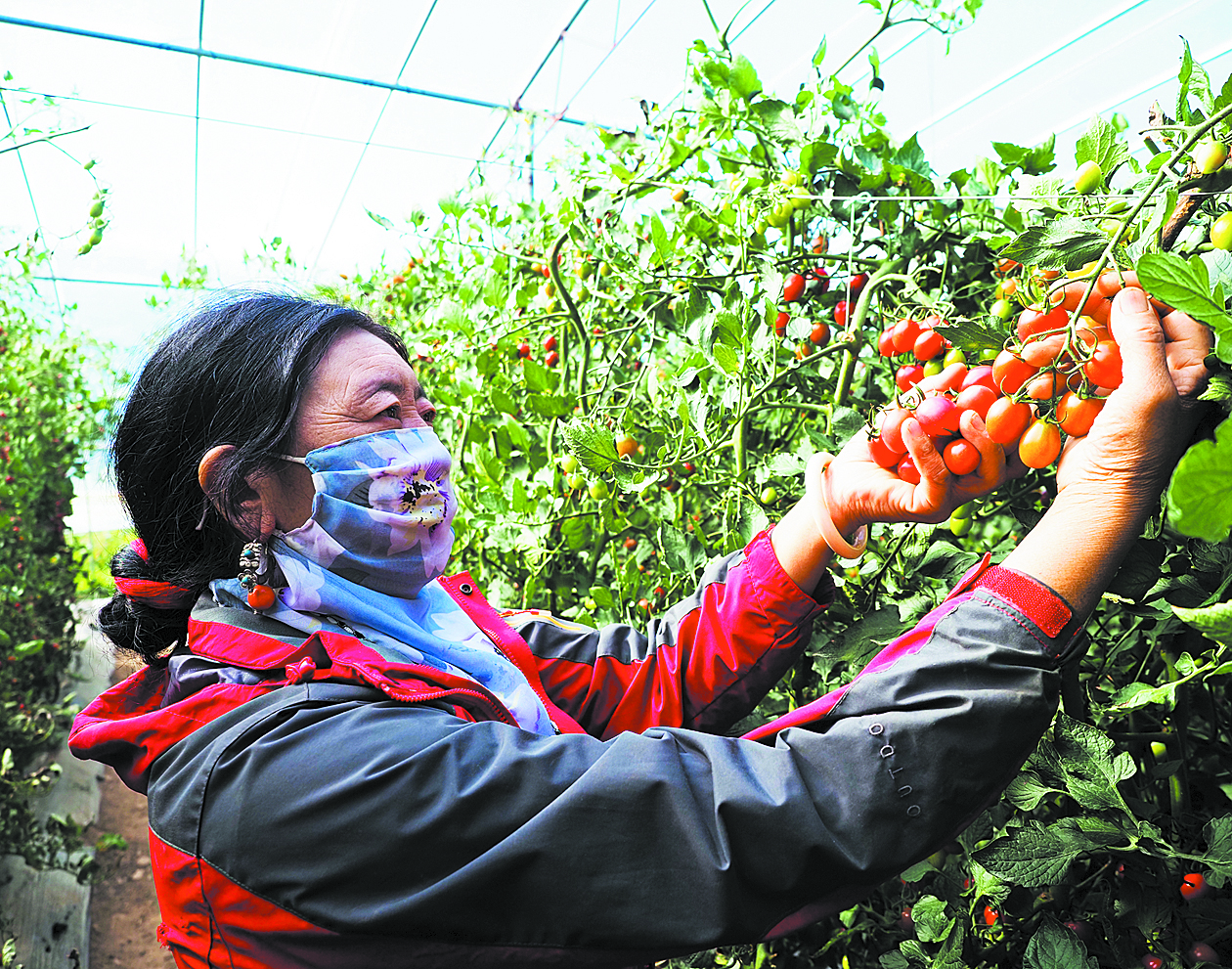 白瑪卓瑪采摘番茄。于譚陽 攝