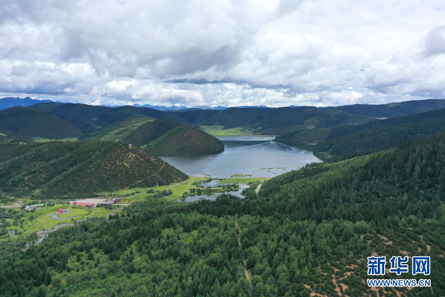 航拍視角下的碧塔海(攝于8月27日)。新華網(wǎng) 趙普凡 攝