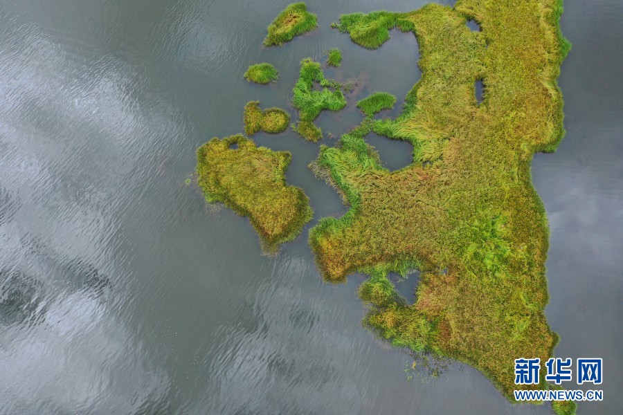 航拍視角下的屬都湖一隅(攝于8月27日)。新華網(wǎng) 趙普凡 攝