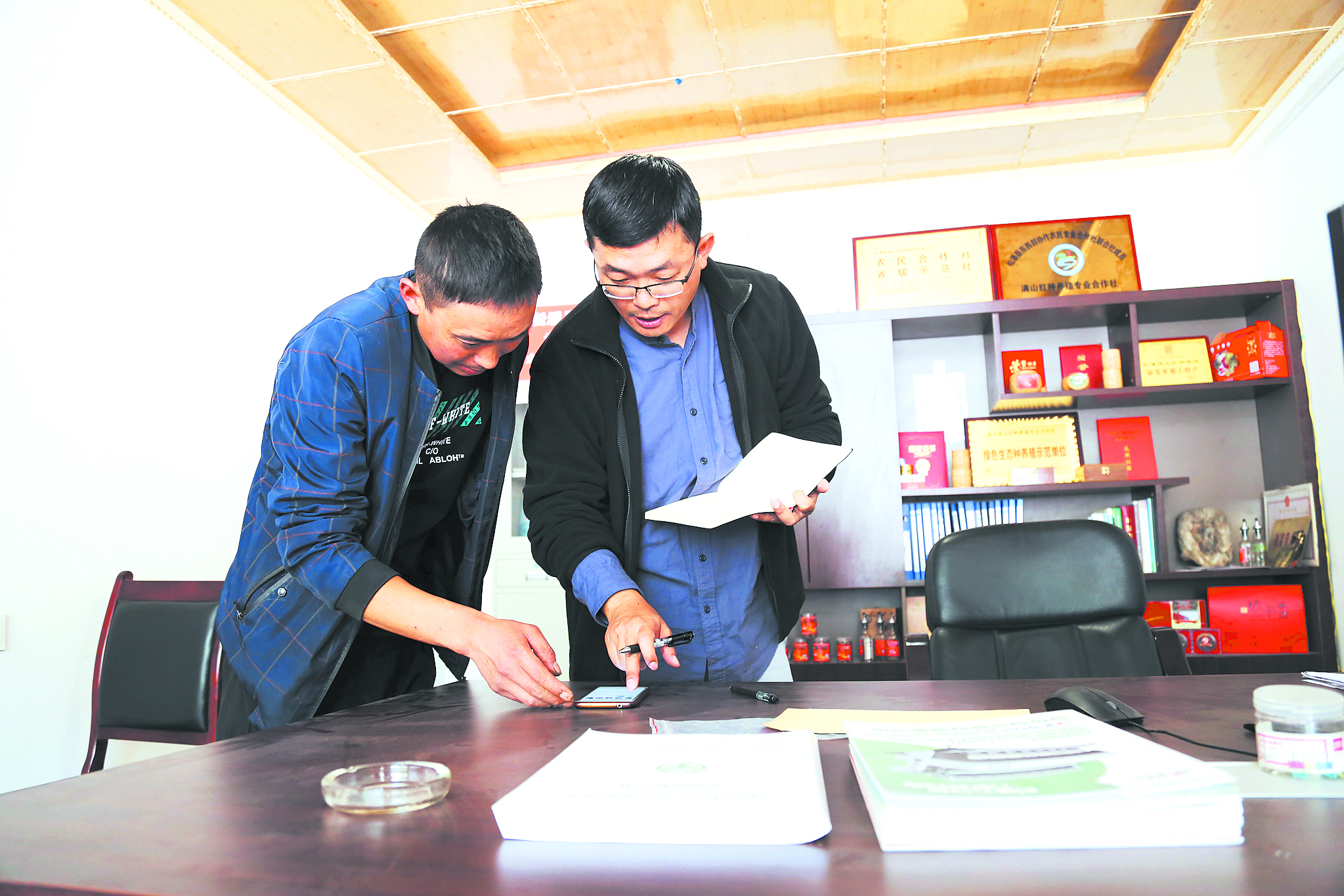 地里花椒采摘忙,村里花椒合作社也是一片繁忙,機(jī)器干燥、抽真空包裝、裝進(jìn)產(chǎn)品盒、貼好地址準(zhǔn)備發(fā)貨。在采訪中,盧洪有手機(jī)微信“叮咚”一聲,他立馬看了一下,“有人給你發(fā)紅包?”“紅包算啥子哦。今年有三成貨是通過(guò)網(wǎng)上銷售,每天,合作社工作人員都會(huì)把訂單信息發(fā)到合作社成員的微信群里。”面對(duì)記者的調(diào)侃,盧洪有顯得很自信。這樣的自信來(lái)自確實(shí)鼓起來(lái)的荷包。