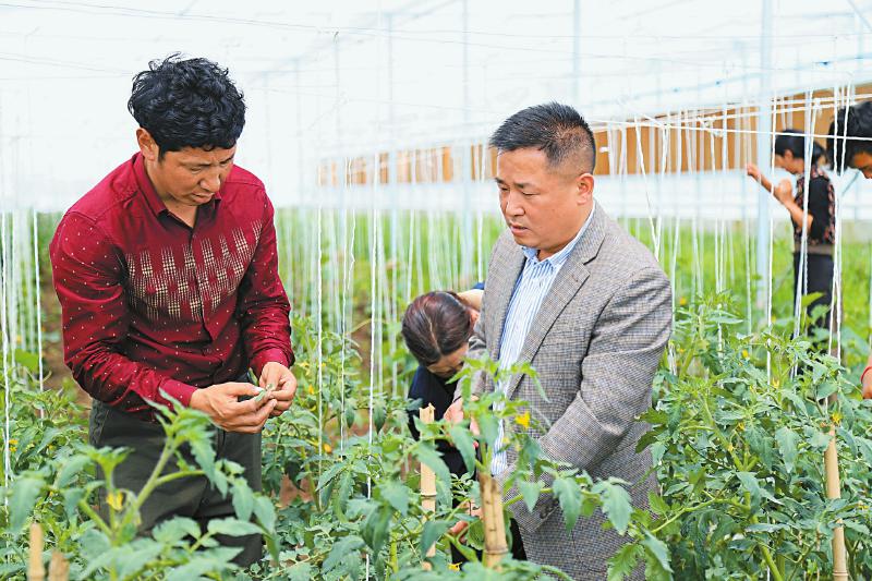 9月21日,四川省阿壩藏族羌族自治州紅原縣瓦切鎮(zhèn)特色蔬菜種植園內(nèi),旦真貢不停地招呼記者品嘗西紅柿。
