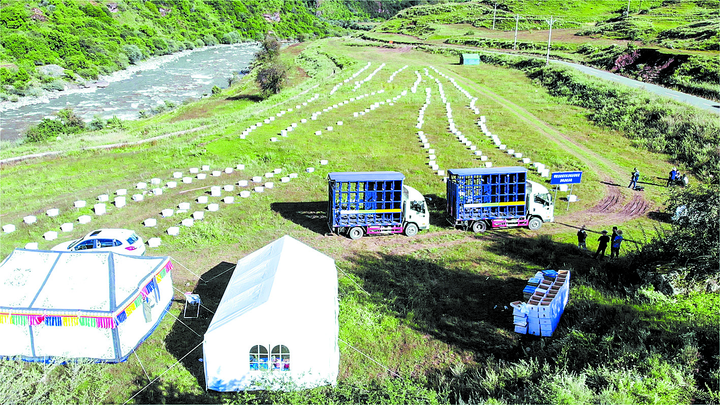拉波鄉(xiāng)養(yǎng)蜂基地是新都區(qū)對(duì)口支援理塘縣的又一個(gè)助農(nóng)項(xiàng)目。該基地不僅打破了高原蜂難養(yǎng)的傳統(tǒng)觀念,未來(lái)還將依托蜂蜜基地建立酒業(yè)生產(chǎn)線,依托小蜜蜂,發(fā)展大產(chǎn)業(yè)。