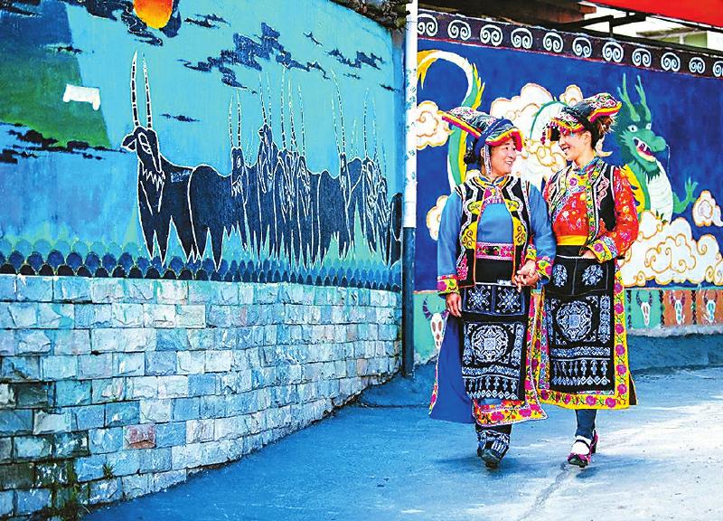 相比桃坪羌寨古老碉樓沉淀的歷史底蘊(yùn),佳山村更像一個(gè)移步換景的藝術(shù)走廊。以“紅軍長征”“羌族圖騰”為主題的墻面彩繪,迄今已有3000多平方米,這些民族風(fēng)情濃郁的彩繪,吸引了不少人來此打卡,成為推動(dòng)佳山村發(fā)展鄉(xiāng)村旅游的新動(dòng)能。