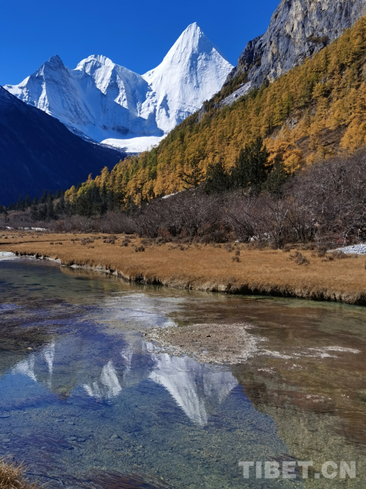 圖為稻城亞丁風(fēng)景區(qū)的三座雪山之一的央邁勇雪山
