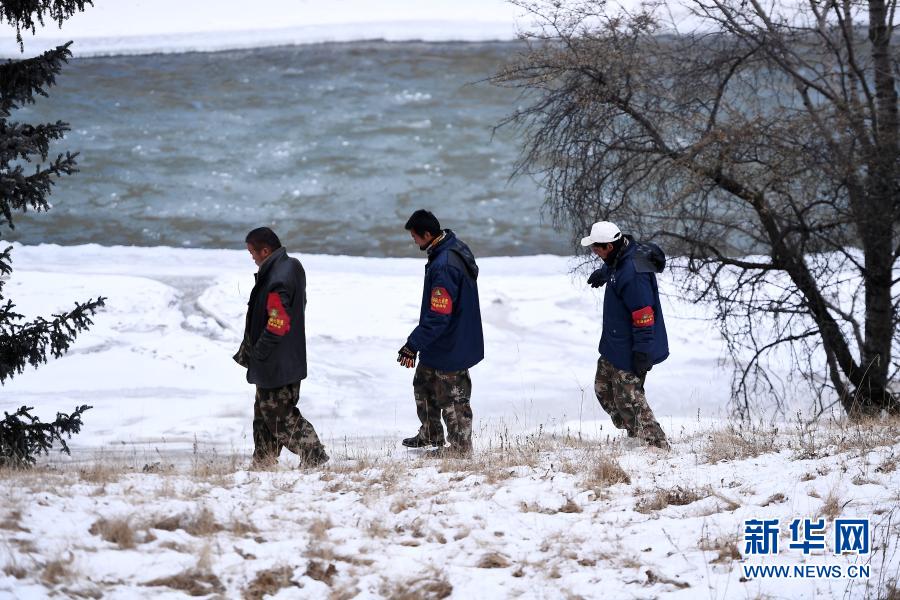 12月8日,祁連山國家公園扎麻什管護站生態(tài)管護員在黑河邊巡查。新華社記者 張宏祥 攝