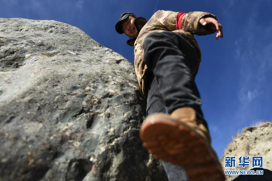 12月8日,祁連山國家公園扎麻什管護站生態(tài)管護員索安拉什旦在巡護途中。新華社記者 張宏祥 攝