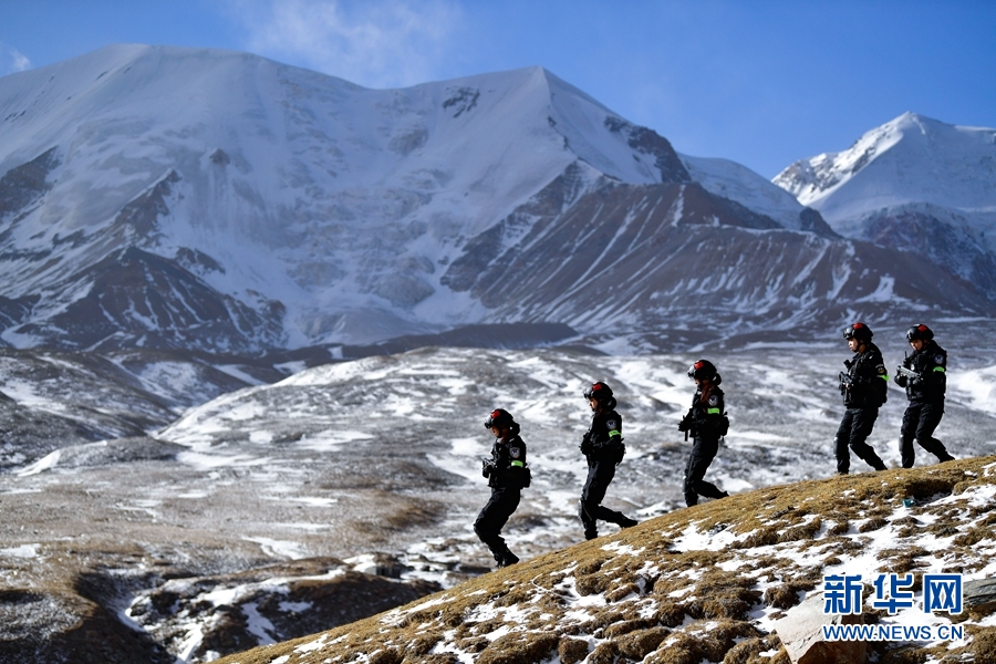 1月9日,青海省果洛藏族自治州公安局特警支隊(duì)直屬女子中隊(duì)的隊(duì)員們?cè)趨⒓痈咴巴膺m應(yīng)性訓(xùn)練。新華社記者 張龍 攝