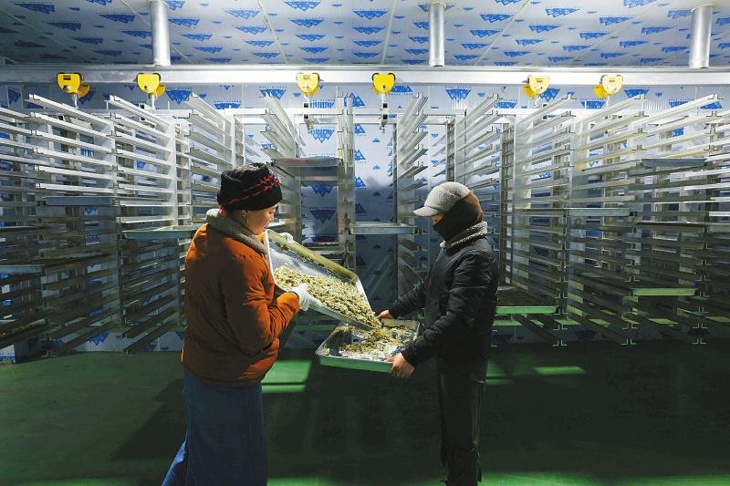1月5日,松茸產(chǎn)業(yè)園的工人通過(guò)真空冷凍干燥設(shè)備加工凍干食用菌。尹鋼 攝